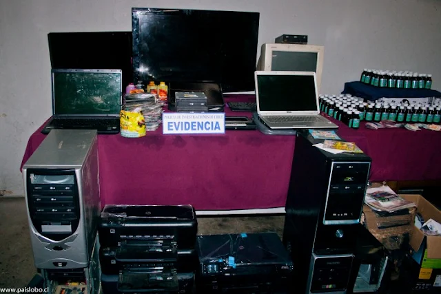 El domicilio de los detenidos, también era utilizado para la copia ilegal de peliculas en formato DVD, para los cual utilizaban 5 computadores, 2 notebooks, 6 impresoras, 2 televisores plasma, y más de un millar de DVDs, entre otros articulos, todo lo cuales fue incautados, además de 300 mil pesos en dinero en efectivo producto de sus ilícitos.
