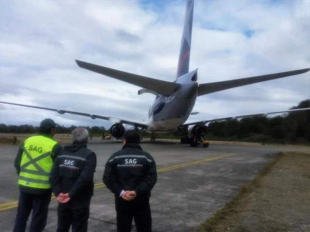 El avión de carga utilizado para esta negociación comercial fue un modelo boeing 777 con experiencia en traslado de ganado vivo en Sudamérica y Norteamérica, especialmente acondicionado en términos de temperatura y humedad para brindar confort a los animales, minimizar el estrés y cumplir con la normativa de bienestar animal durante el transporte.