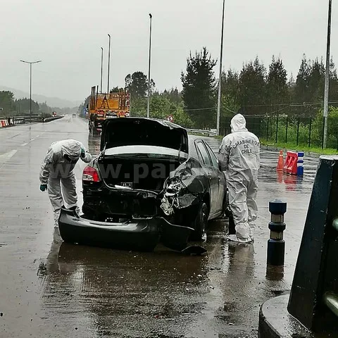 Carabineros de la Subcomisaria Lanco llegó al lugar con el objetivo de interceptar el automóvil, encontrando el móvil abandonado luego de impactar contra una de las barreras de paso del peaje Troncal Lanco. Testigos habrían señalado que 4 ocupantes descendieron del vehículo y se dieron a la fuga en diferentes direcciones.