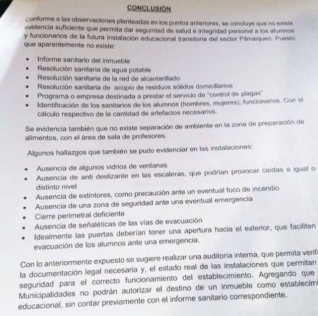 En esta condición iniciaron sus clases, que se han visto interrumpidas luego que varios niños presentaran diarreas y vómitos, debiendo ser trasladados hasta el Cesfam de Entre Lagos y Hospital base de Osorno. Situación habría sido denunciada por los apoderados a las autoridades la semana pasada, sin que estas tomaran acciones reales.