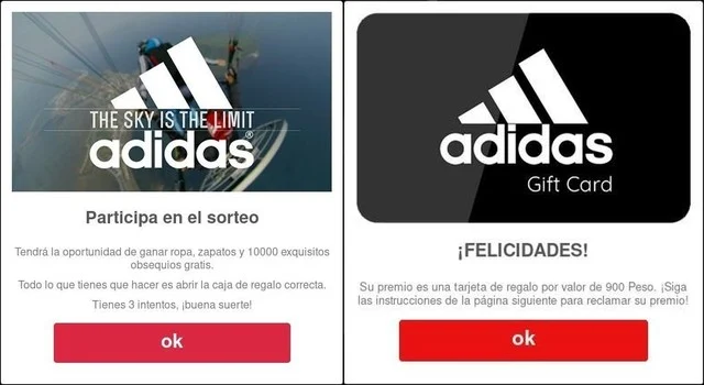 De acuerdo al análisis realizado por el Laboratorio de Investigación de ESET, en caso de que el usuario acceda al enlace del mensaje, que nada tiene que ver con el sitio legítimo de Adidas, será invitado a participar en una sencilla dinámica en la que “solo dispondrá de tres intentos” y que le permitirá finalmente acceder a los supuestos obsequios, pero cuyo objetivo final es la descarga de una aplicación maliciosa.
