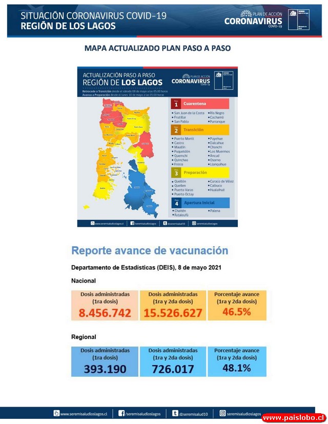 COVID19: Región de Los Lagos - Reporte 09 de Mayo 2021
