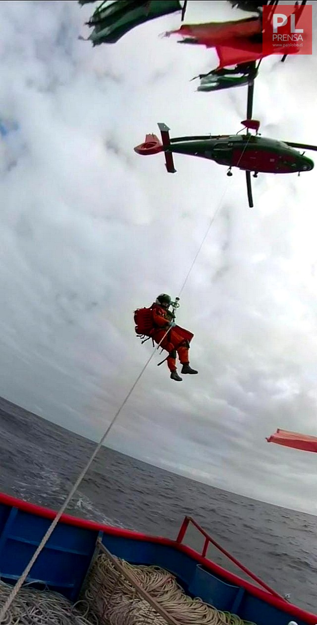 “Se utilizó la maniobra Hi-Line, logrando extraer a la víctima en camilla desde la embarcación para luego trasladarlo con vida al hospital base de Puerto Montt. Como parte del Grupo Aeronaval Puerto Montt aportamos así al área de misión de la defensa asignada a la Armada de Chile en seguridad e intereses marítimos para la salvaguarda de la vida humana en el mar”.