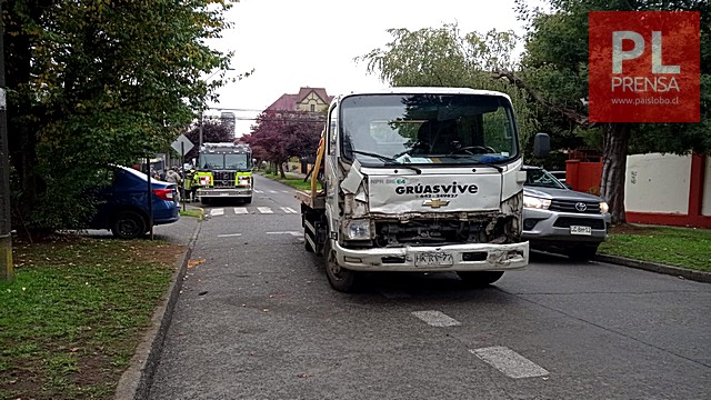 Al lugar del accidente llegaron carros y voluntarios de Bomberos de la 2da y 5ta Compañias de Bomberos, las que auxiliaron a la conductora del automóvil Chevrolet Premier -patente RDYF89-, que transitaba por calle Amthauer en dirección poniente, móvil que había colisionado con una grúa de la empresa Grúasvive -patente HKRY77- que que transitaba por calle O'Higgins en dirección al sur.