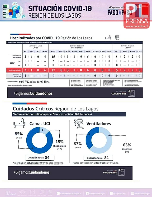 Covid19: informe entregado por el Seremi de Salud de la Región de Los Lagos, al mediodía de este 04 de julio 2022